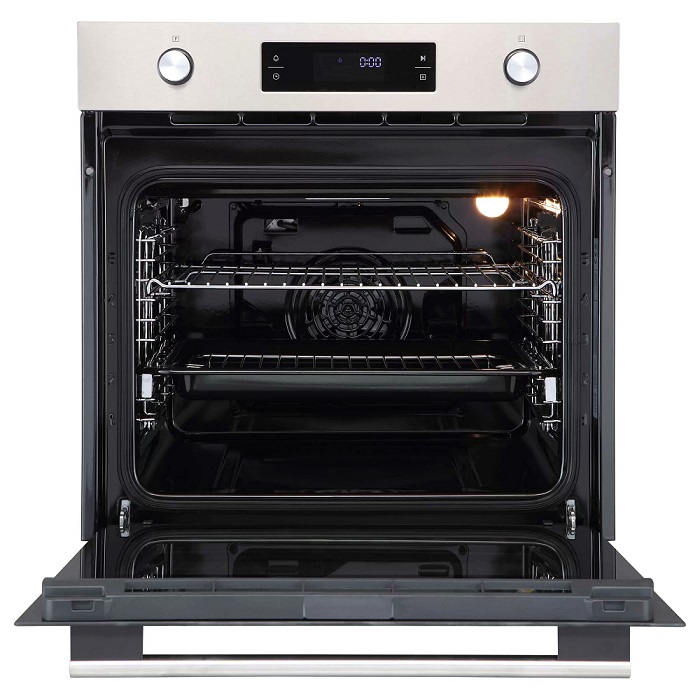 Объем 70 л. Электронное управление. Таймер до 9 ч. Защитное отключение. Режимы работы: верхний + нижний нагрев с конвекцией, верхний + нижний нагрев, гриль, двойной гриль с конвекцией, двойной гриль, кольцевой нагрев с конвекцией, нижний нагрев, размораживание. Эмаль легкой очистки. Телескопические направляющие на 1 уровне. Направляющие хромированные. В комплекте: решетка, противень. Температурный диапазон от +50*С до +250*С. Три стекла дверцы духовки. Охлаждающий вентилятор. Размеры (ШхГЛxВ) 59,5 х 57,5 х 59,5 см. Класс энергопотребления A. Гарантия 2 года. Страна-производитель - Китай.
